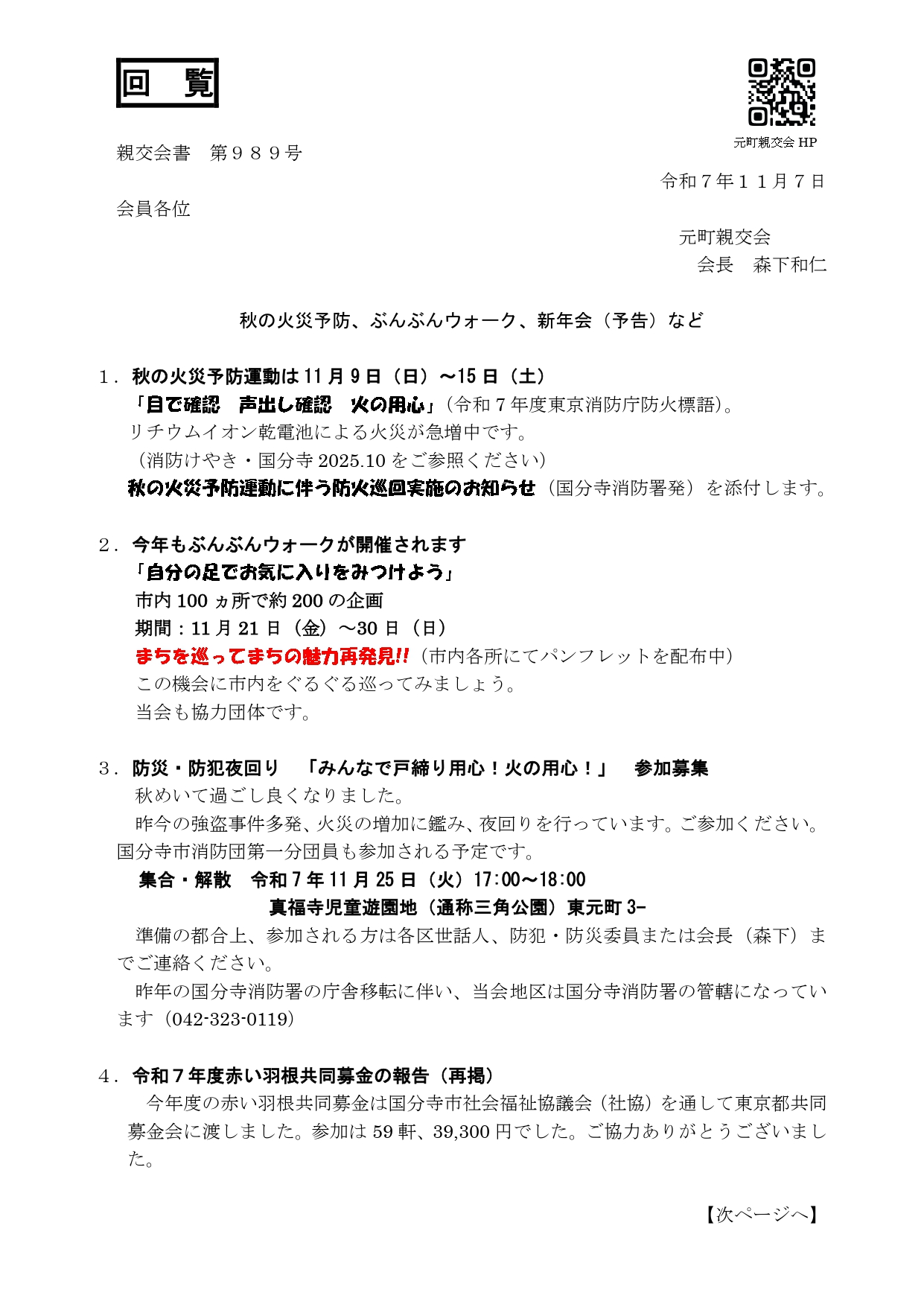 私たちは東京都国分寺市東元町(2丁目、3丁目、4丁目の一部)で活動している町内会です。
