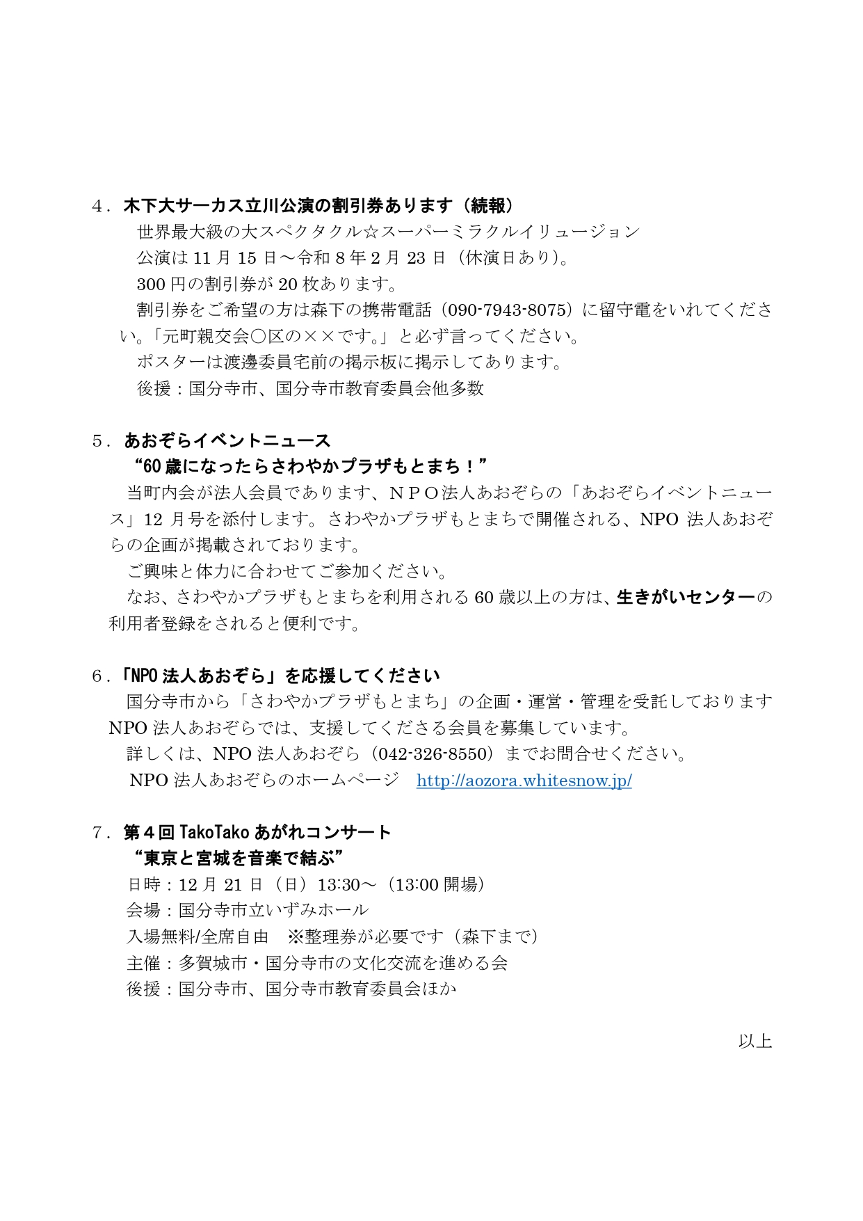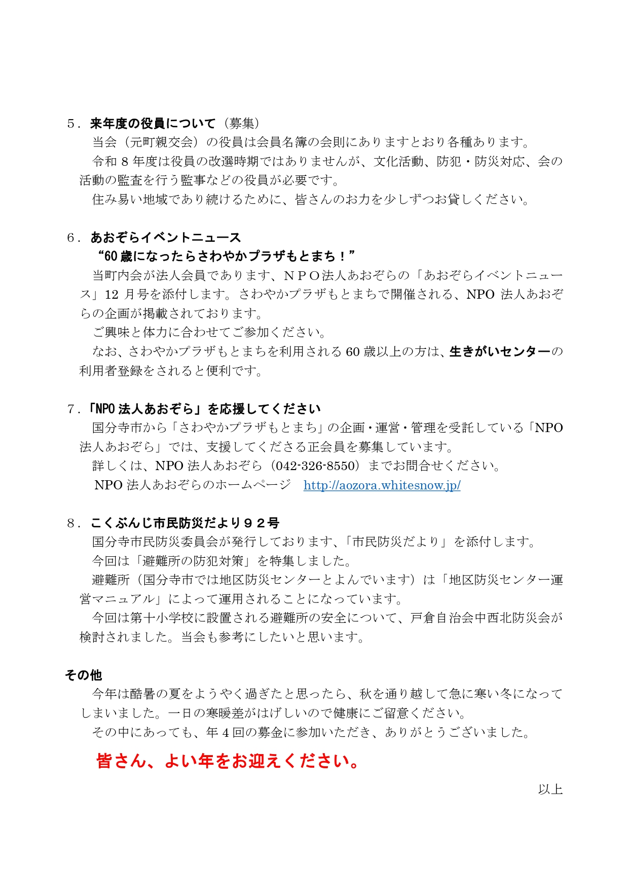 English 作成中 We are a neighborhood association in Kokubunji City.