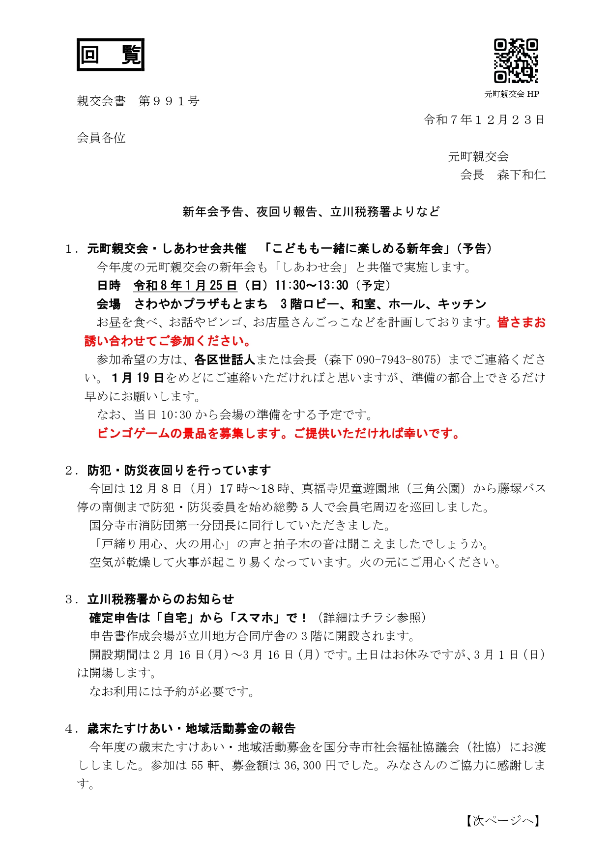 会報等世話人さんへ届けますので、回覧・配布をよろしくお願いいたします。